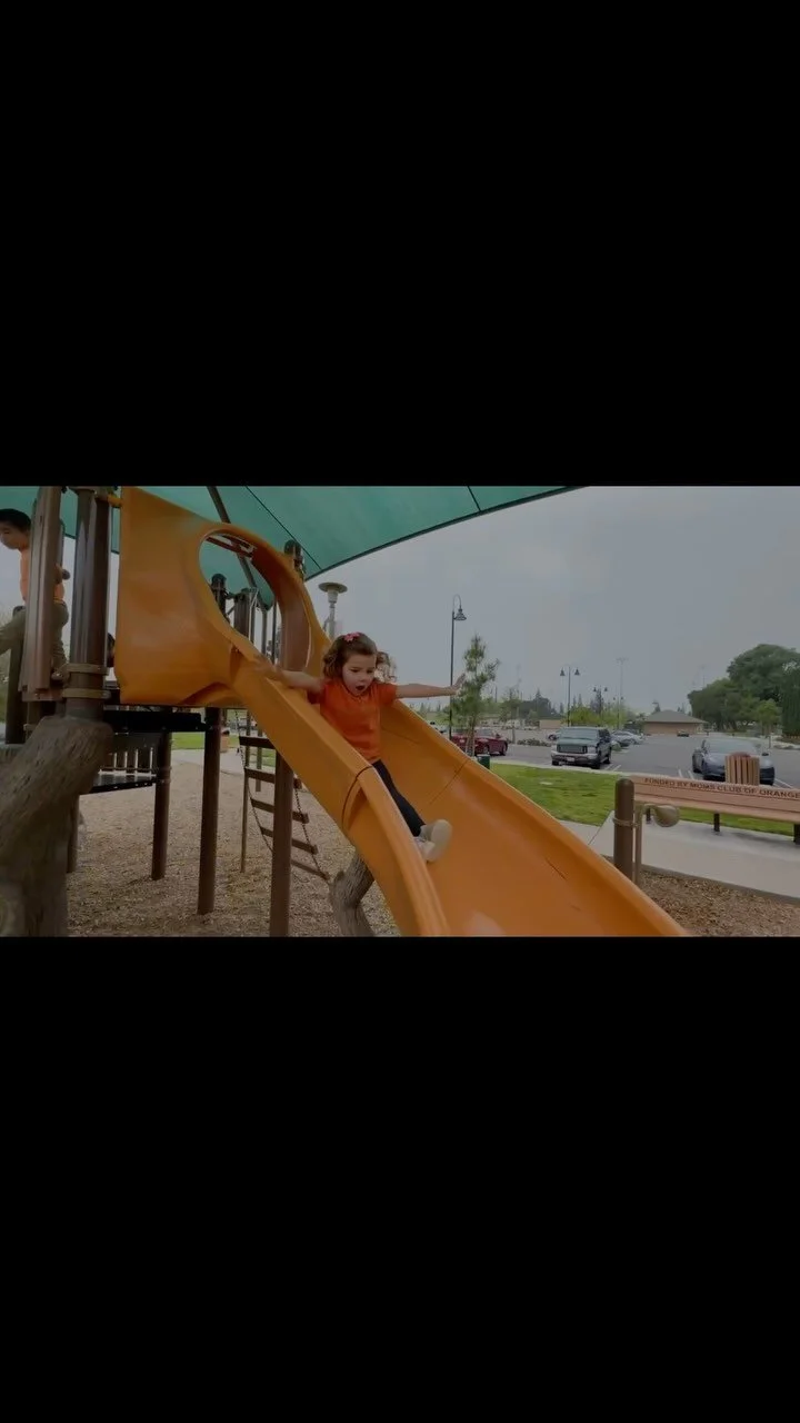Backyard: A covered patio, a large sandbox with a playground, and a grass area equipped with additional playground equipment.
